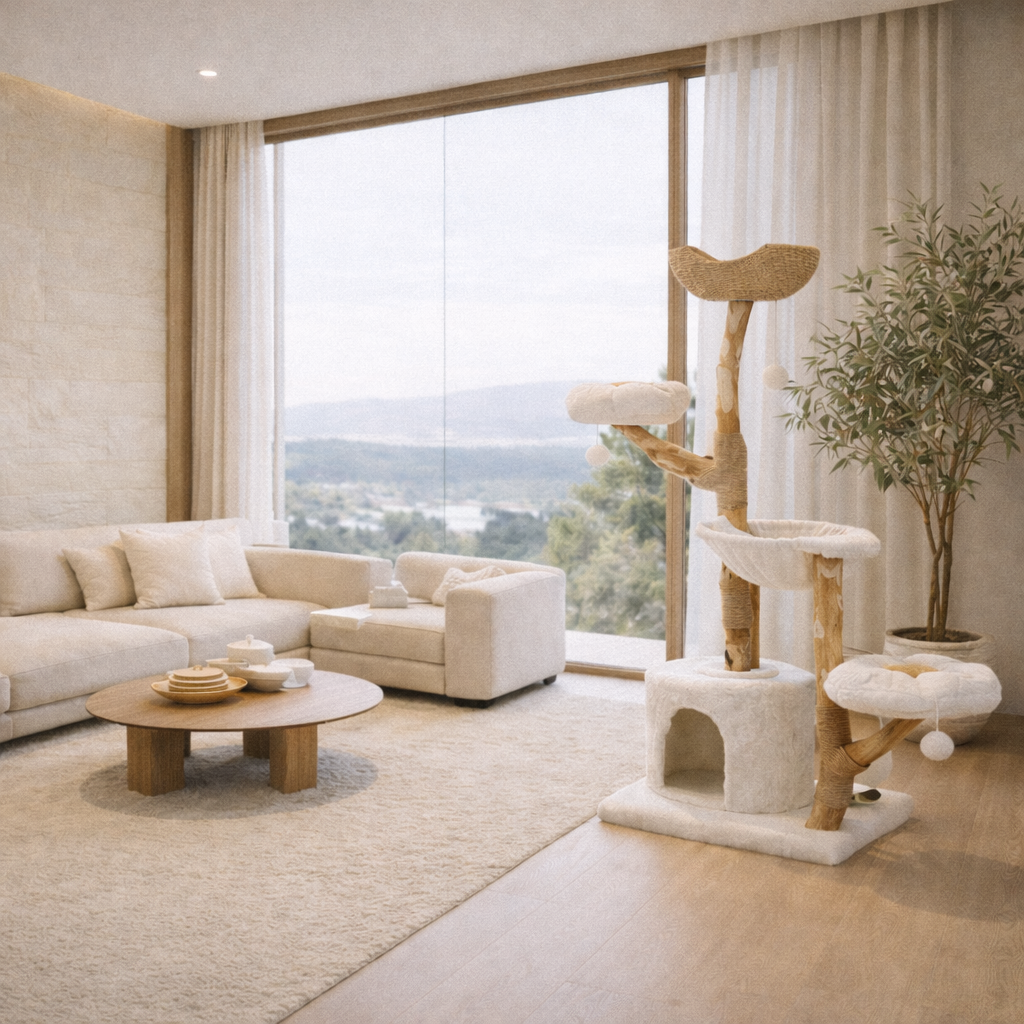 Designed as a statement piece, Nimbus Plus replaces carpeted cat trees with natural materials, balanced proportions, and long-term durability.
