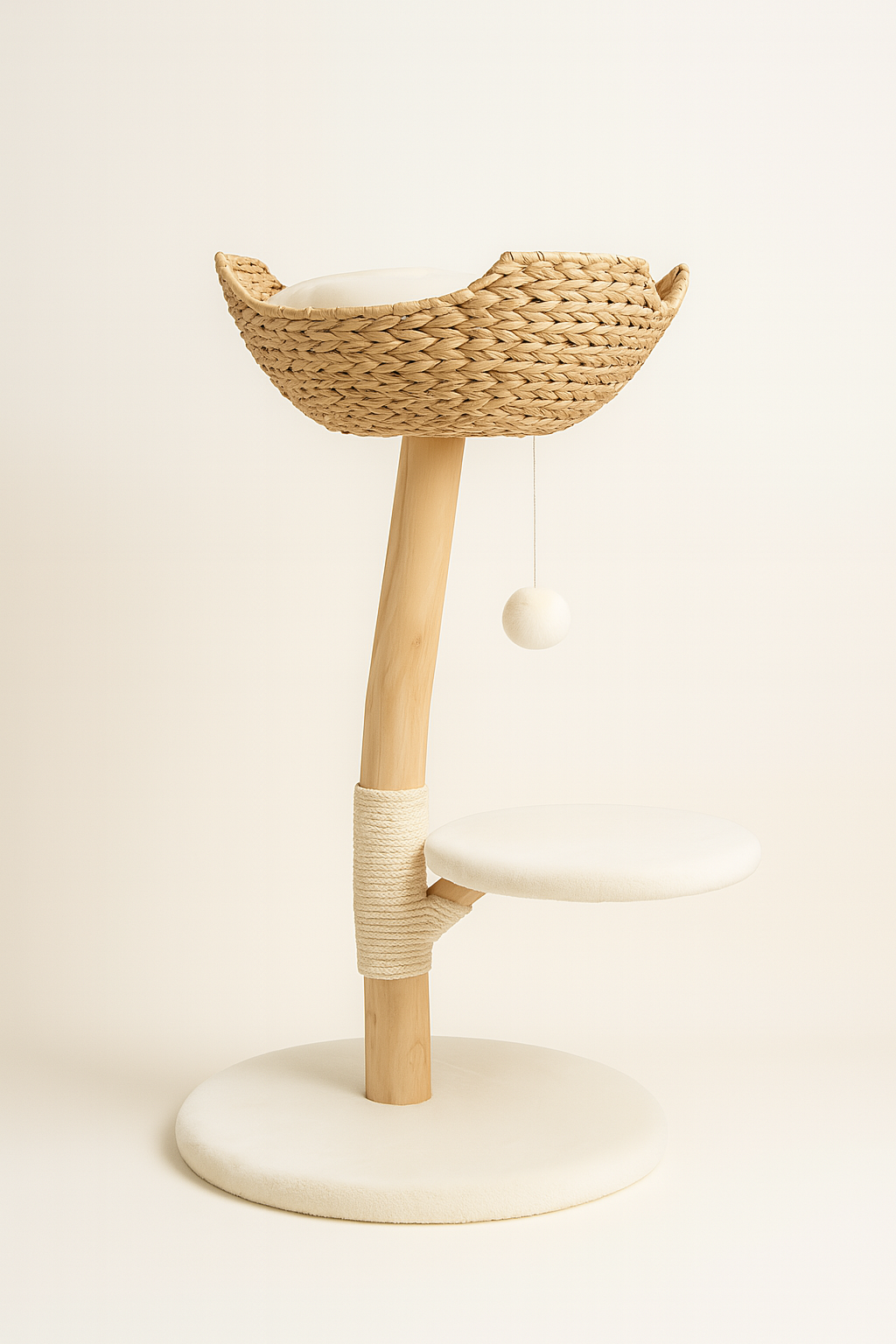 Willow Whisper is a minimalist perch crafted from real willow wood and wrapped in creamy plush—so your cat gets the vertical territory they crave while your living space keeps its serene, gallery-like vibe. One generously padded basket invites elevated naps, a hand-tied sisal scratch post satisfies daily claw care, and a weighted 60 cm base keeps everything rock-solid even during zoomies.